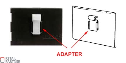 Adaptor /łącznik/ do kasetek i osłonek służy do połączenia kasetek i osłonek cenowych z różnymi elementami mocowań METO.