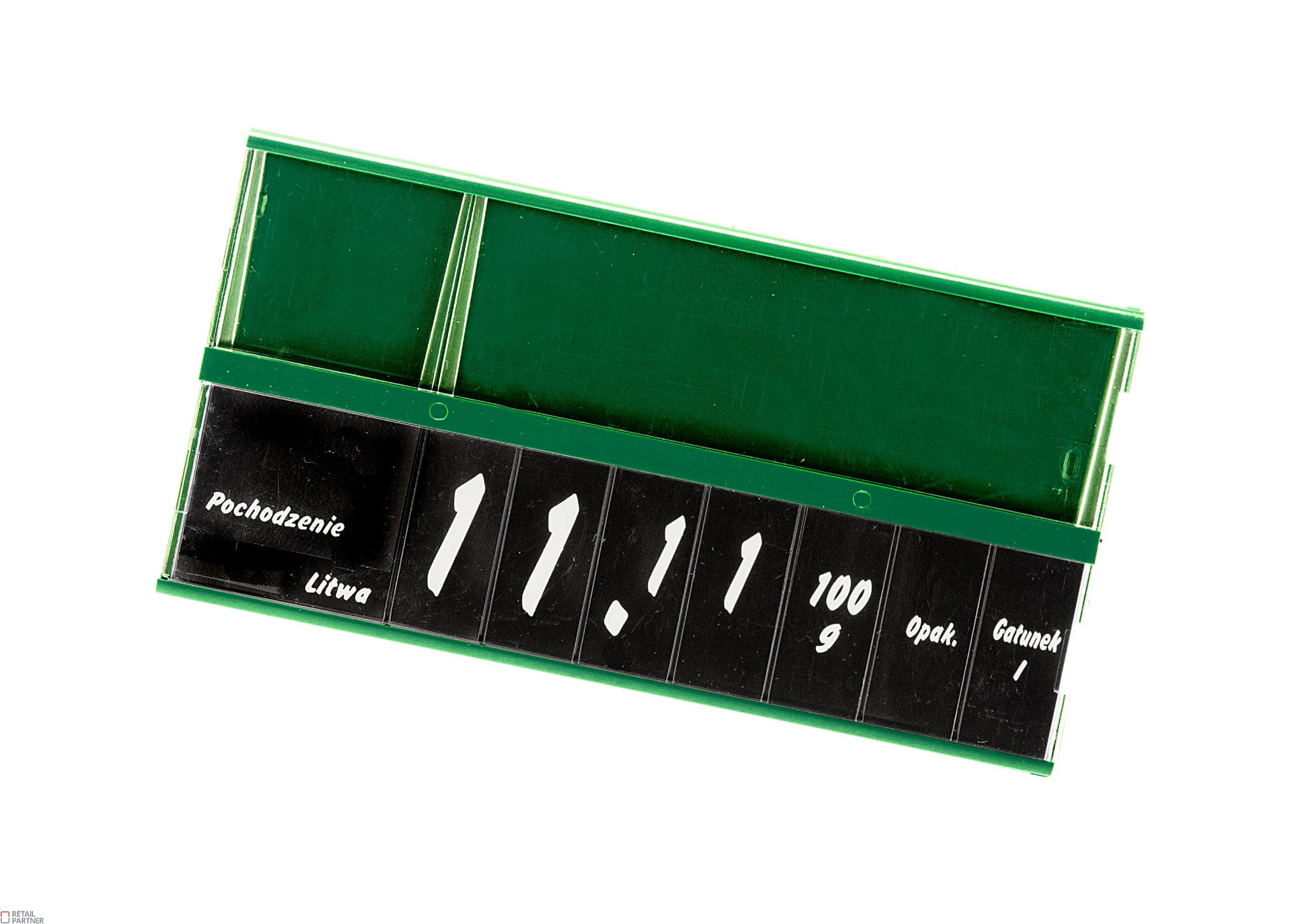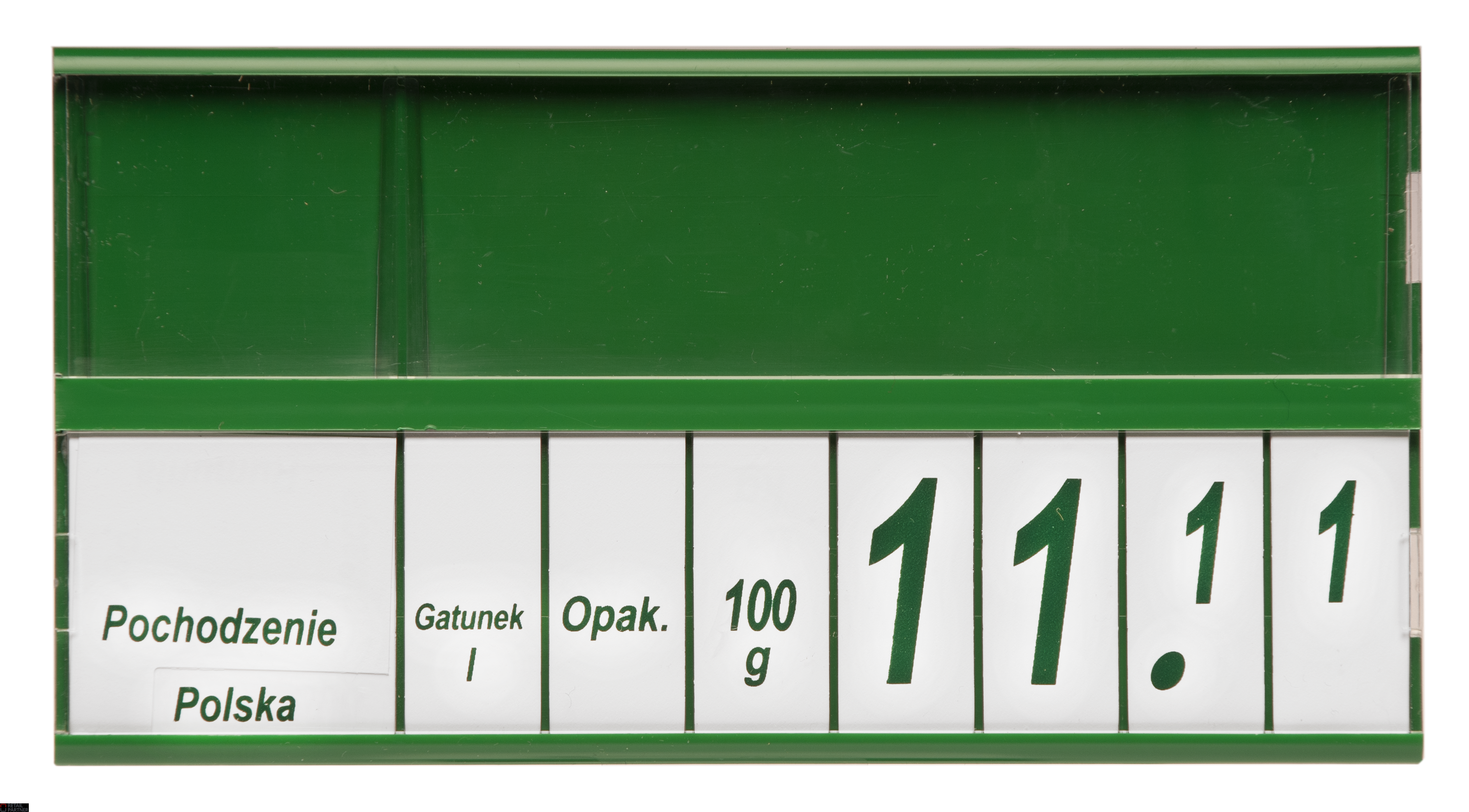 Jedna służy do umieszczenia opisu towaru, druga podzielona jest na 6 przegródek na cyfry tworzące cenę.