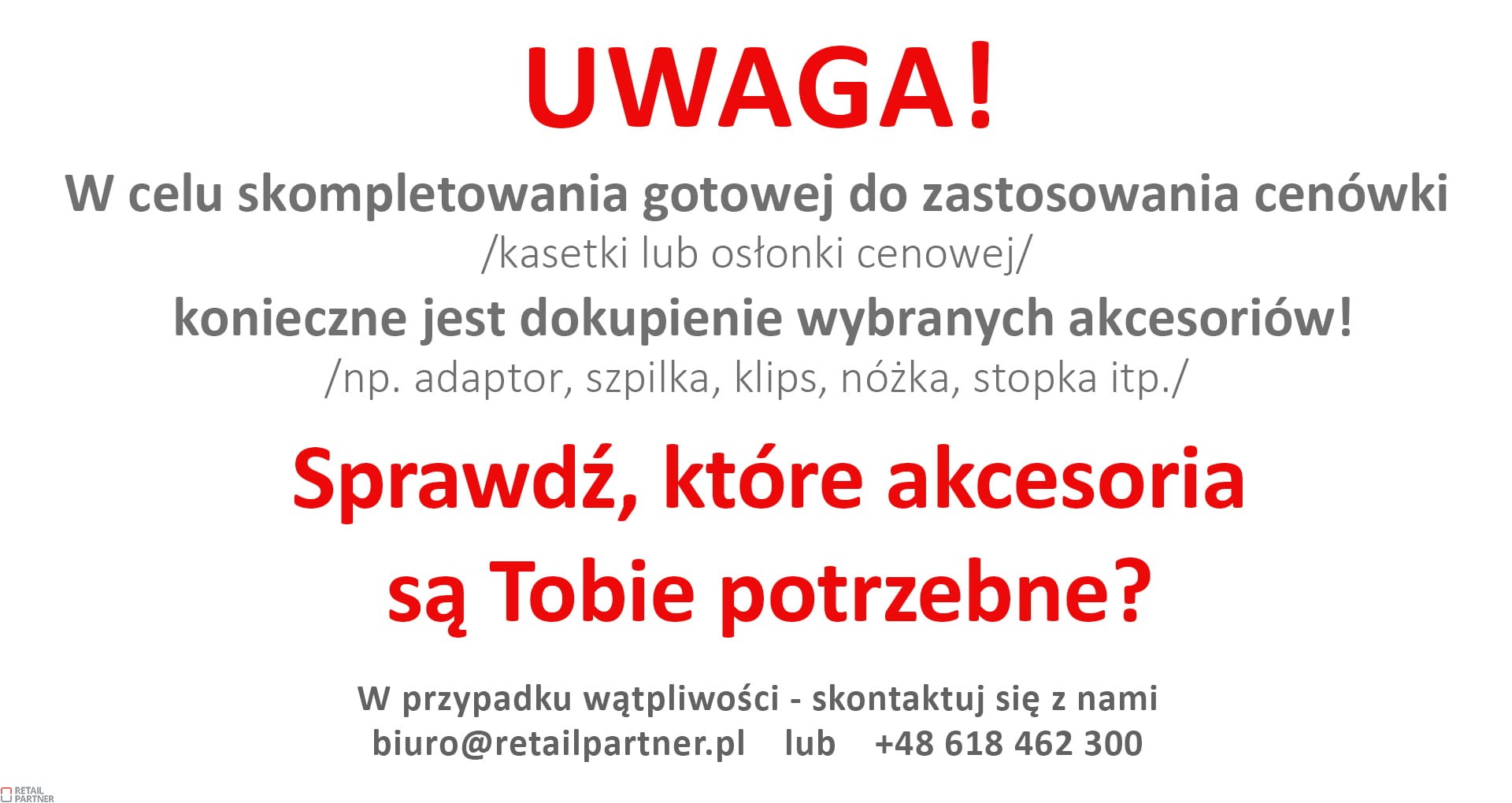 W przypadku wątpliwości - skontaktuj się z nami +48 618 462 300, biuro@retailpartner.pl