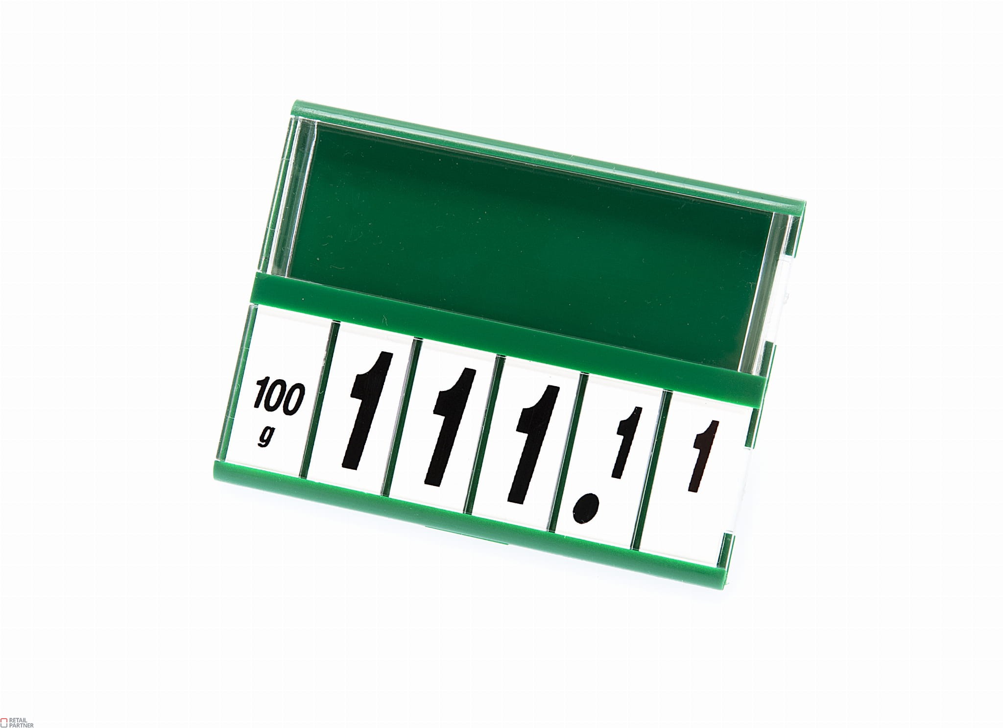 Kasetka cenowa PROMOSIGN zielona. Czarne cyferki na białym tle. Kartonik 25 szt.
