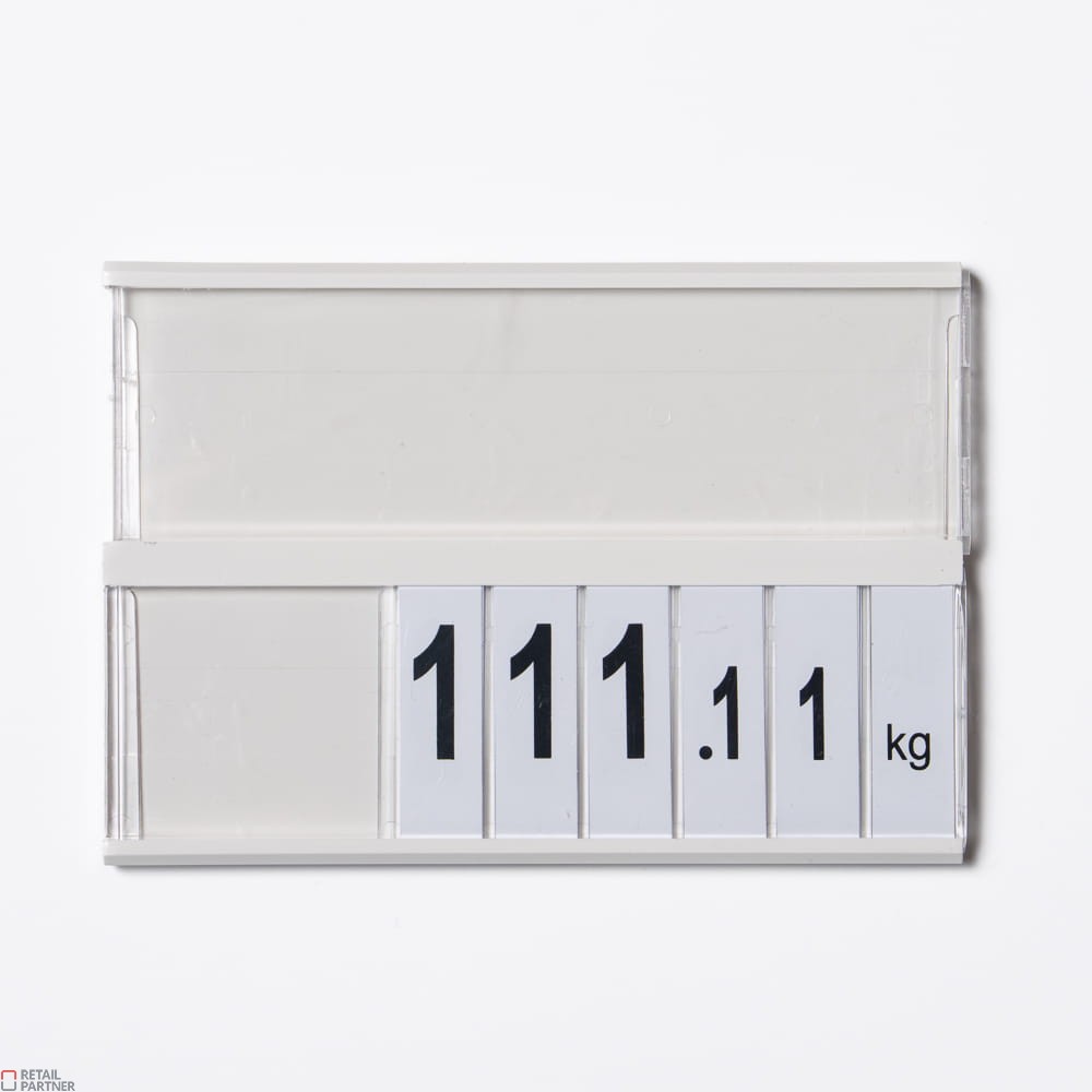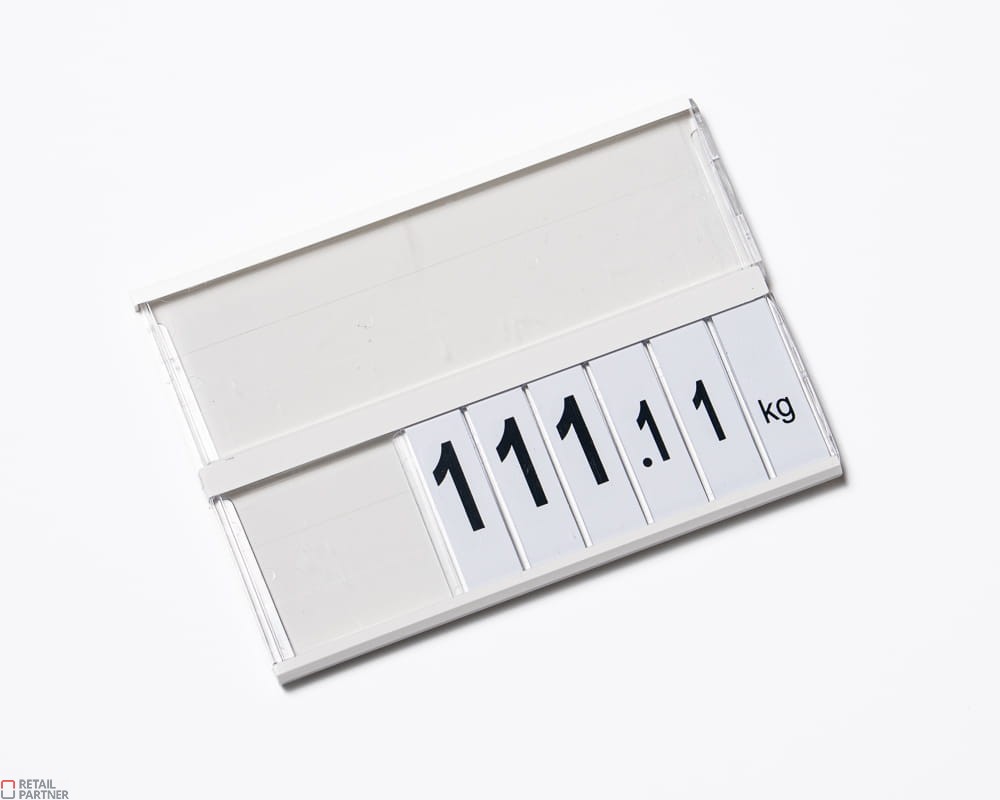 Jedna służy do umieszczenia opisu towaru, druga podzielona jest na 6 przegródek na cyfry tworzące cenę.
