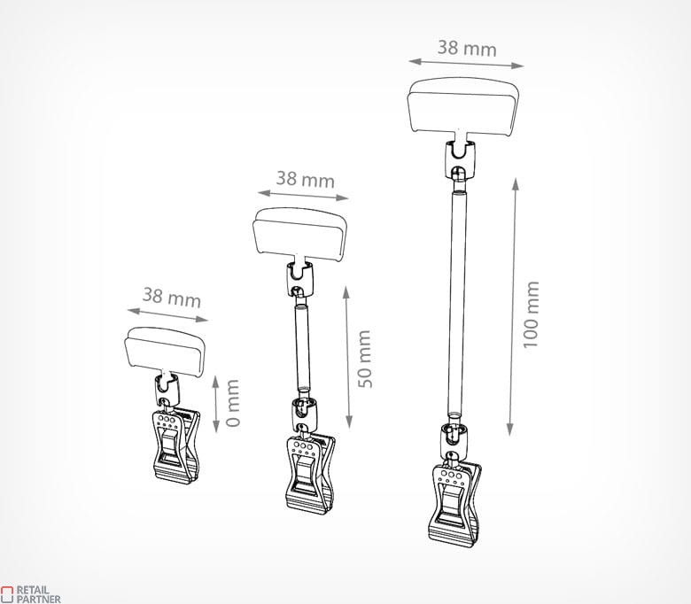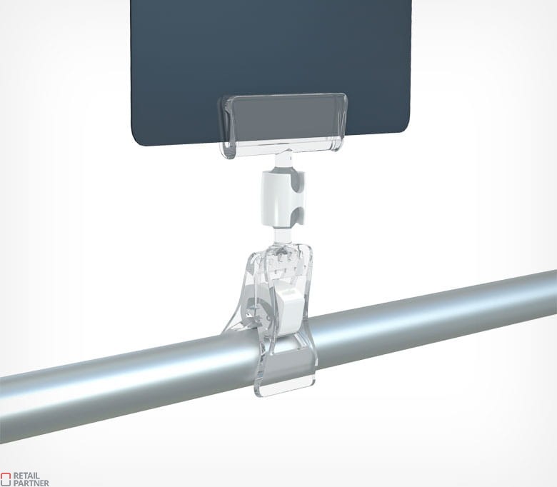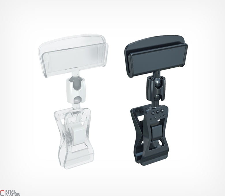 System uchwytów z kulką pozwala na zmianę pozycji metki w różnym kierunku, co pozwala na optymalną ekspozycję ceny.