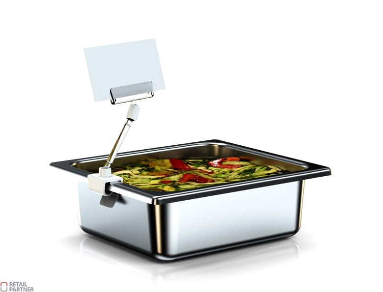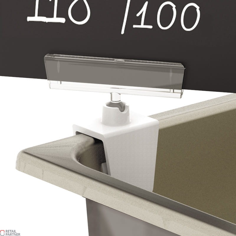 Klips przeznaczony do montażu etykiety cenowej na kuwecie, misach, na końcu cienkiej półki,