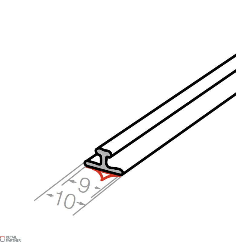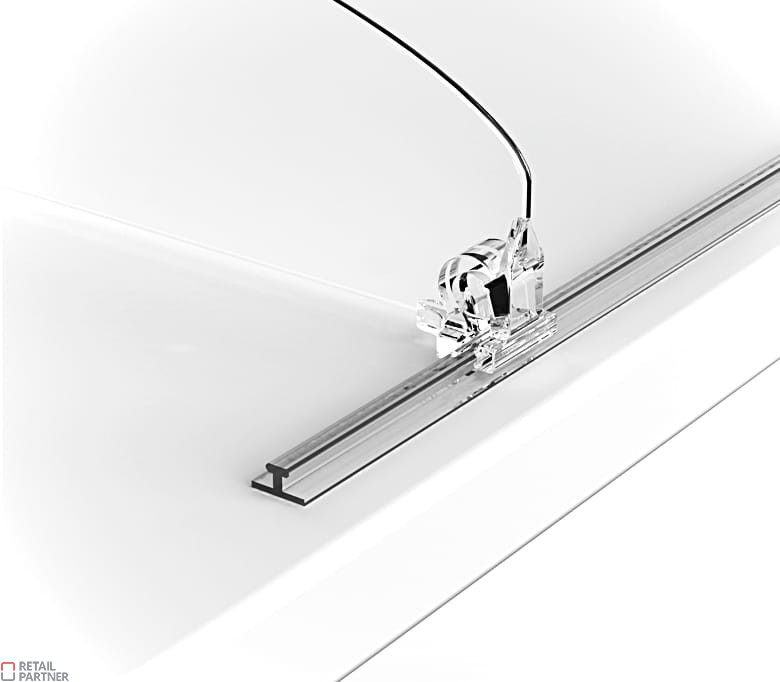 Listwę przykleja się z przodu półki w celu zamontowania poprzecznie oddzielaczy (separatorów) lub popychaczy.