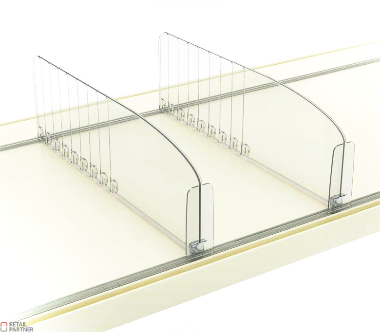 System montażu przegród jest łatwy i pasuje do większości półek sklepowych.
