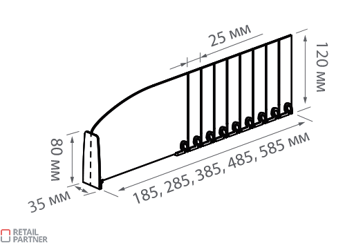 Oddzielacz towaru wysokość 120 mm z frontem o wysokości 80 mm dł. max. 485 mm